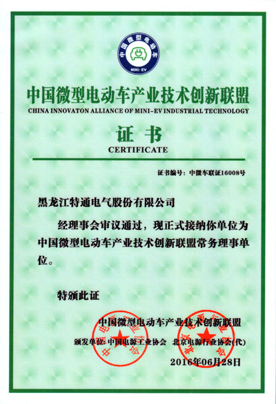 特通電氣成為“中國微型電動車產(chǎn)業(yè)技術創(chuàng)新聯(lián)盟”會員單位